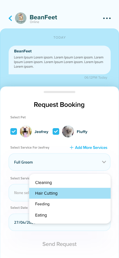 In the dynamic world of pet care, pet owners, groomers, and pet care businesses face challenges in efficiently managing grooming appointments, maintaining pet health records, and ensuring seamless communication. There’s a need for a comprehensive and user-friendly app that not only simplifies pet grooming and care processes but also fosters a stronger bond between pet owners and service providers. This app should address the gaps in scheduling, tracking, and connecting within the pet care ecosystem, ultimately enhancing the well-being and happiness of both pets and their caregivers. Enter PetConnect, the innovative solution to revolutionize pet grooming and care experiences.
